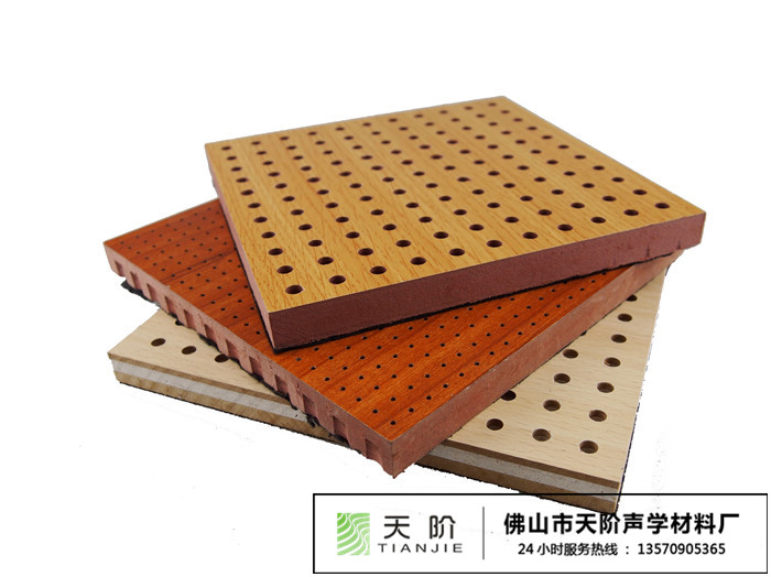 1、木質吸音板:木質吸音板是一種在密度板正面開槽,背面穿孔的狹縫共振吸聲材料。對吸聲頻譜選擇性很強,木質吸音板對中低頻有很好的吸音性能。如在吸聲結構后空腔上填入適量的吸聲棉可提高中、高頻的吸聲效果。天階聲學木質吸音板采用優質的板材,最高具有E1環保、A2級防火、防水等性能,飾面顏色及材料選擇性廣,能滿足客戶多樣化的選擇。較槽木吸音板,孔木吸音板相對抗撞擊能力強。
