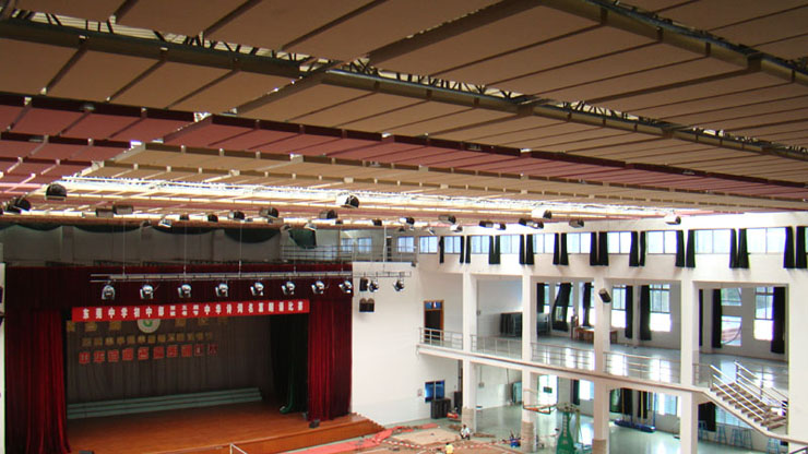 吸聲處理僅限于屋頂下的部位,因而要求吸聲體有更大的吸聲量,適應(yīng)大空間的需要;