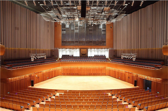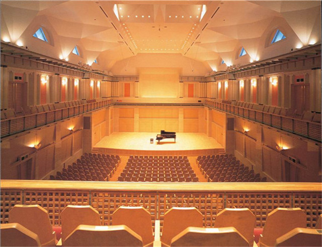 音樂廳Pyramid擴(kuò)散體,例如在打開窗戶的那一面,由于完全不反射它所碰到的聲音能源,因而吸音率為100%,亦即該面為完全吸音面,但同時(shí)也可能有完全無法隔音的面存在。室內(nèi)之吸音程度大時(shí),即能壓制室內(nèi)的擴(kuò)散音并降低噪音水平。此方法系遠(yuǎn)離噪音源和影響點(diǎn)時(shí)會(huì)有效果,但若室內(nèi)各處都有噪音源且和影響點(diǎn)之距離相近時(shí),例如窗邊的座位對由窗戶入侵的聲音,因?yàn)樵胍舻闹苯佑绊懱螅识浣逵晌羲a(chǎn)生的隔音效果不會(huì)太顯著。音樂廳聲學(xué)設(shè)計(jì)的指標(biāo)一流的具有高雅文化氛圍的專業(yè)性音樂廳可供自然聲演出,并適應(yīng)多種風(fēng)格的音樂作品演出。